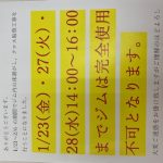 2026-01-08 / 最終更新日 : 2026-01-08 babatakehisa News & Events 工事を行う為1/23.27.28は14:00~16:00はジム使用不可です。 お知らせ(重要) 日頃よりクライミングジムギリギリをご利用頂き、誠にありがとうございます。 1/23~2/6の期間でジム内の床剥がし、クロス貼替工事を行うこととなりました。 つきましては、1/23(金)・27(火)・28 […]