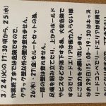 2026-03-02 / 最終更新日 : 2026-03-02 babatakehisa News & Events 2階ボルダー・六段壁リニューアル☆ こんにちは☆ お知らせです! 2階ボルダリングリニューアルに伴い、 3/3(火)の夕方頃から壁の作業を行います。 4(水)ホールド外し 5(木)・6(金)大西さんルートセット 7(土)12:00~18:30スタッフセット […]