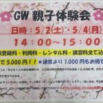 2026-04-25 / 最終更新日 : 2026-04-25 babatakehisa News & Events GW親子体験会5/2(土)・5/4(月)開催決定! 🌸GW親子体験会🌸開催決定 日時:5/2(土)・5/4(月) 14:00~15:00 初回登録料・利用料・レンタル料・講習料全て込み! 親子で5,000円!!★通常より1,000円もお得です★ ♦保護者の方1 […]